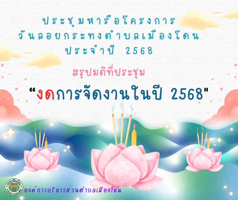 องค์การบริหารส่วนตำบลเมืองโดน ได้ประชุมหารือเกี่ยวกับการจัดกิจกรรมโครงการอนุรักษ์สืบสานวัฒนธรรมประเพณีวันลอยกระทงที่ผ่านมา สรุปมติที่ประชุม "งดการจัดงานในปี 2568"
