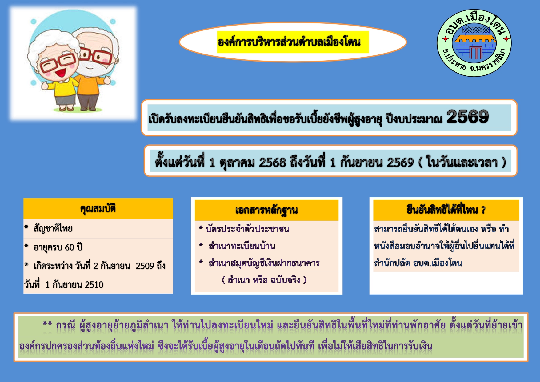 ประชาสัมพันธ์เชิญชวนขอขึ้นทะเบียนผู้สูงอายุอายุครบ...